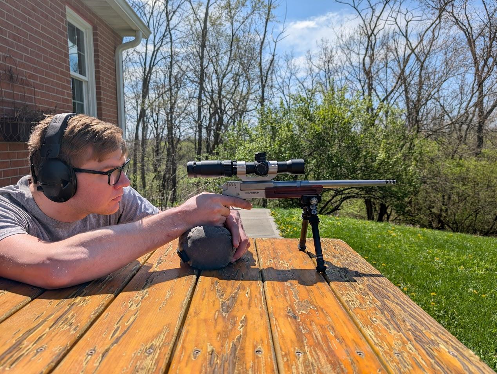 Before diving into the specifics of each rest, there’s a couple things that apply to any rest I’d like to cover. First, no matter what rest you choose it’s important to avoid putting pressure on the barrel. It takes very little force to deflect a barrel enough to induce a meaningful change on POI. In the rifle world we can avoid the issue with free floating handguards. Not every handgun gives us that option, so we have to adjust our shooting technique instead. Second, consistency in shooting form is important as you move between rests. The more consistent your grip, trigger pull, and sight picture is, the more consistent your results will be. Finally, it’s important to be mindful of the mechanics of your gun while shooting off a rest. Revolvers in particular require care to ensure you don’t damage your rest or injure yourself with the cylinder blast. The picture below shows what not to do. My hand is directly on the cylinder gap, which will very likely result in an injury. The bag I’m using has a leather top, but a cloth topped bag would be damaged by the cylinder blast too. I’m also putting a decent amount of pressure on the barrel. This will result in a POI shift.